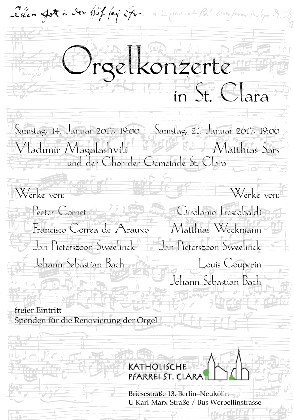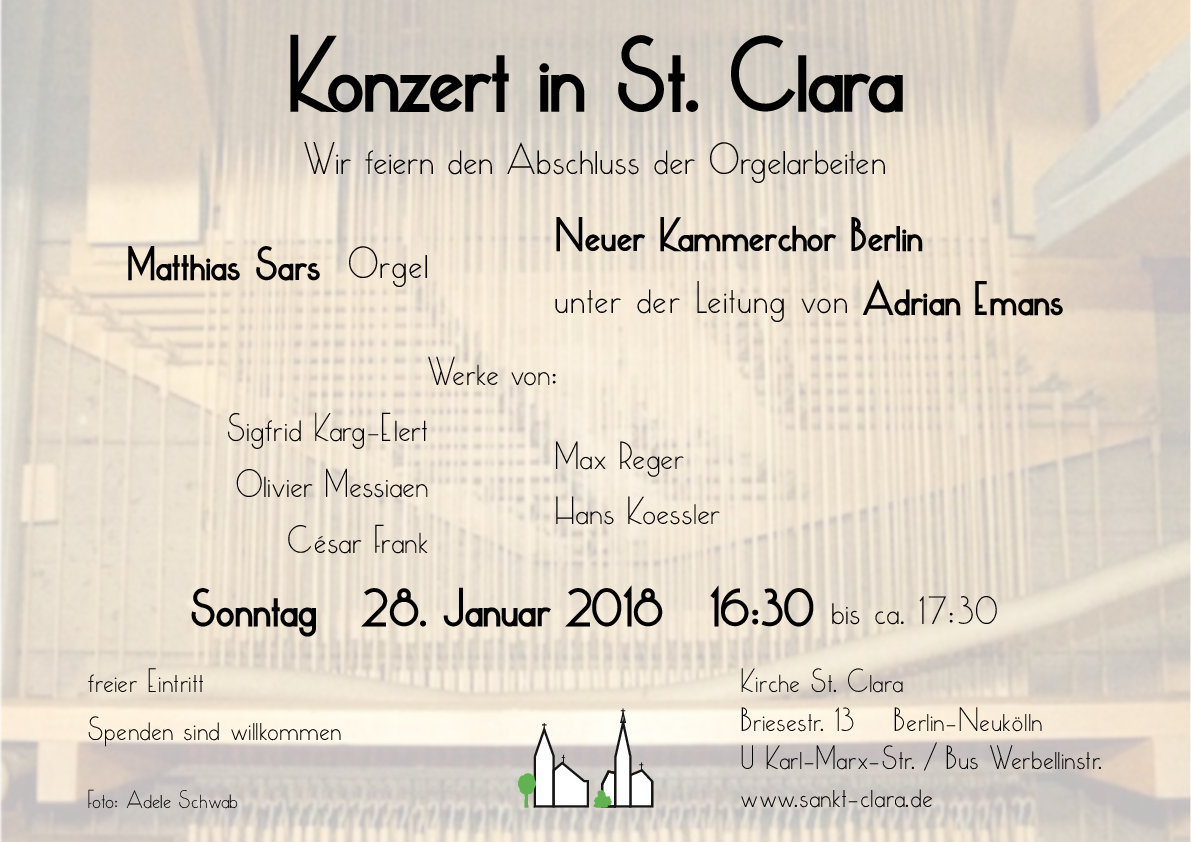 Sunday, 28 January 2018, 16:30 Kirche St. Clara Berlin-Neukölln |