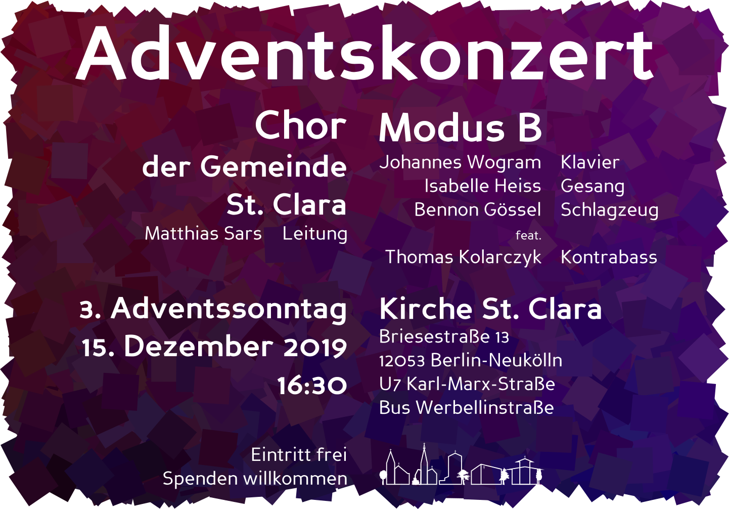 Sunday, 15 December 2019, 16:30 Kirche St. Clara Berlin-Neukölln |
