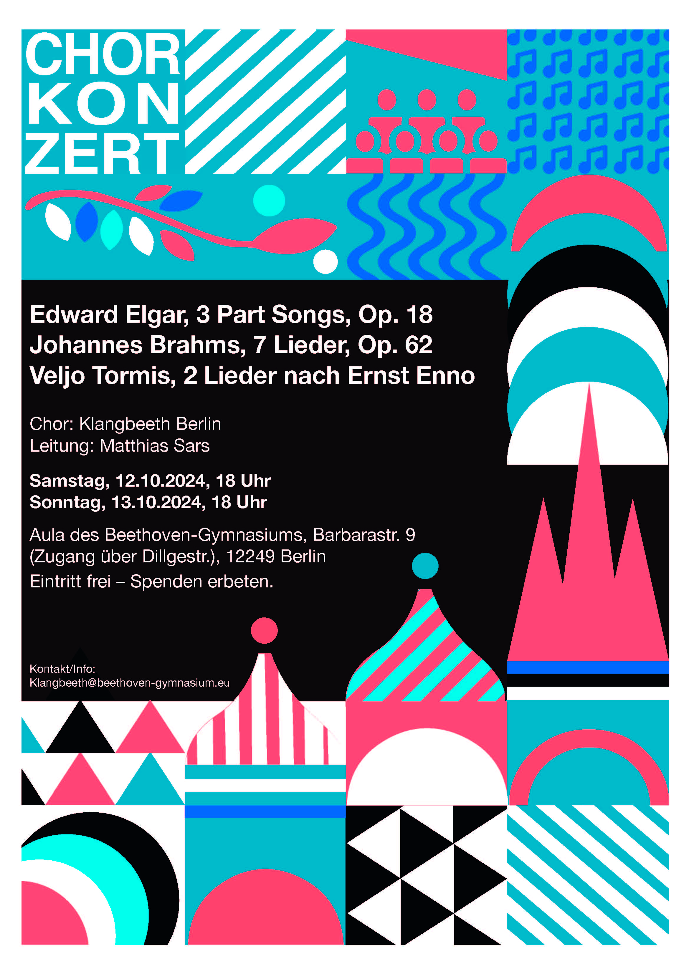 Samstag, 12 October 2024, 18:00 Sonntag, 13 October 2024, 18:00 Aula der Beethoven-Schule Berlin-Lankwitz |